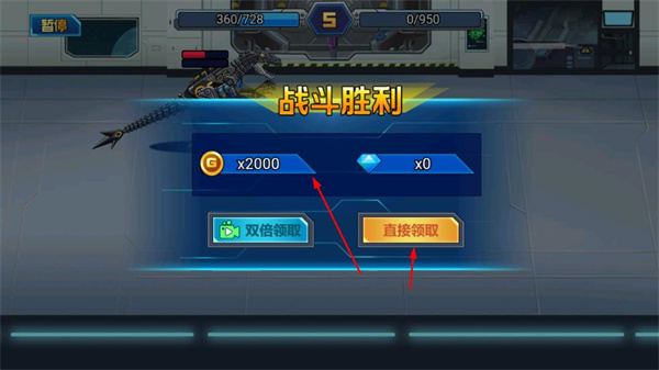 3、戰(zhàn)斗勝利后領(lǐng)取金幣獎(jiǎng)勵(lì),可選擇直接領(lǐng)取或雙倍領(lǐng)取,積累資源用于后續(xù)升級。