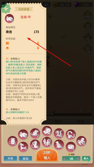 1、在游戲界面中,找到悟人相關(guān)區(qū)域,點(diǎn)擊其中的生肖圖標(biāo),比如生肖牛圖標(biāo)。