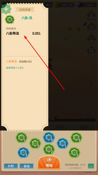 3、切換到悟地標(biāo)簽頁(yè),查看相關(guān)的八卦等裝備,點(diǎn)擊想要查看的八卦裝備。