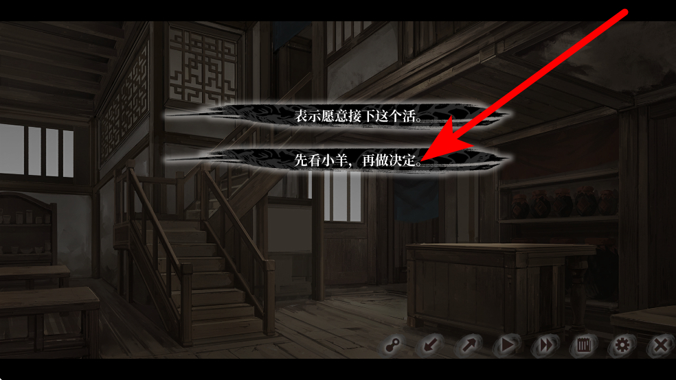 2、面對諸如是否接活等抉擇時,會出現(xiàn)不同選項,玩家需結(jié)合之前獲取的信息和對局勢的判斷,選擇表示愿意接下這個活或先看小羊。