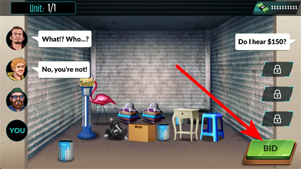 2、參與倉庫競標(biāo),在倉庫拍賣場景中,點(diǎn)擊BID按鈕參與競標(biāo),爭取獲得倉庫的所有權(quán)。