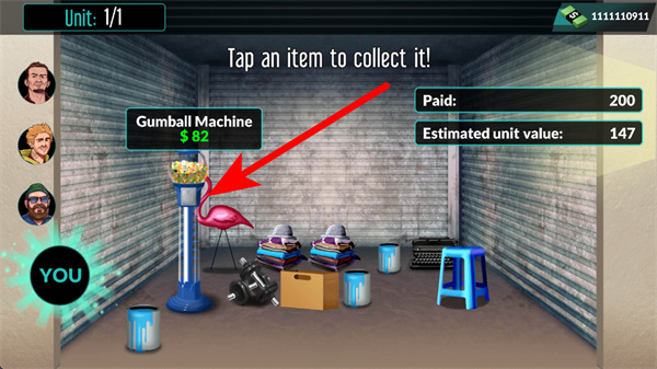 3、收集倉庫物品,競拍成功后,點(diǎn)擊物品如Gumball Machine進(jìn)行收集,評估物品價值。