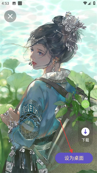 3、在動態(tài)壁紙詳情頁面,點擊設為桌面,即可將該動態(tài)壁紙設置為桌面壁紙。