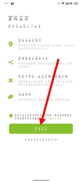 1、打開襄陽出行公交,點擊下方綠色的同意授權(quán)按鈕,進入APP主界面。