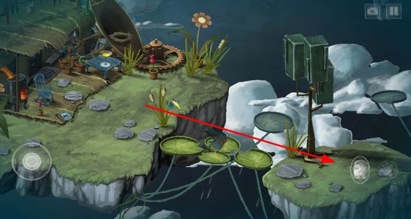 4、遇到斷橋等阻礙時,要解謎尋找其他路徑,更換路線繼續(xù)前進(jìn),探索更多的空中島嶼區(qū)域。