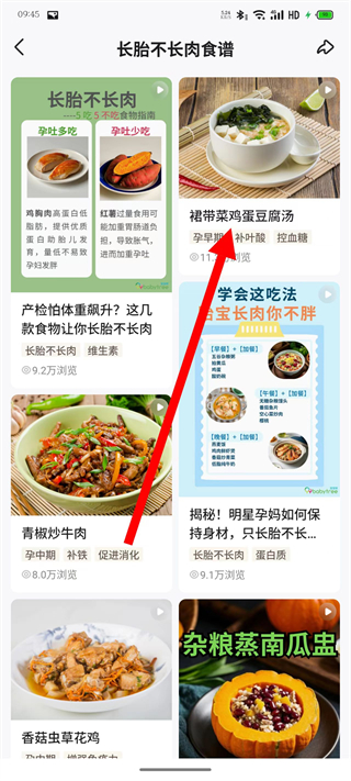 3、在長(zhǎng)胎不長(zhǎng)肉食譜列表中,點(diǎn)擊想要查看的食譜內(nèi)容。