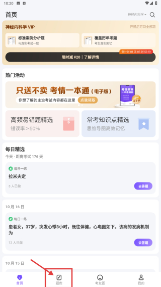 1、打開醫(yī)學(xué)考試學(xué)習類應(yīng)用,點擊底部題庫選項,進入題庫頁面。
