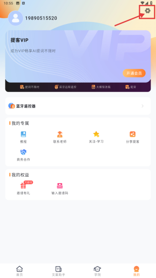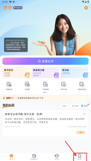 1、打開提詞類應(yīng)用,點(diǎn)擊底部我的選項(xiàng),進(jìn)入個(gè)人中心頁面。