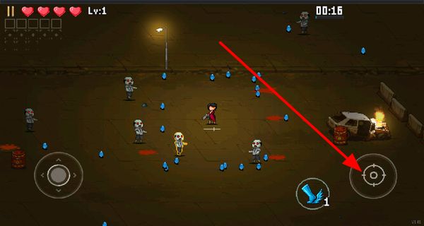 2、玩家可以點(diǎn)擊右側(cè)的射擊方向按鈕,瞄準(zhǔn)周圍的僵尸,發(fā)起射擊,消滅來(lái)襲的敵人。