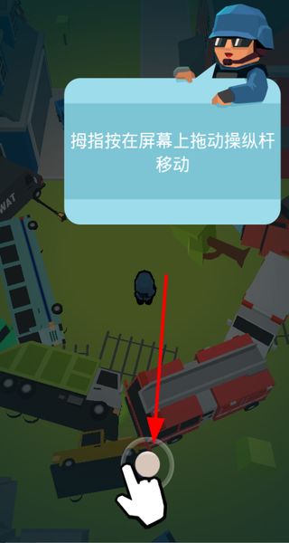 1、用拇指按住屏幕拖動(dòng)操縱桿,控制角色在場(chǎng)景中移動(dòng),探索不同區(qū)域,尋找目標(biāo)。
