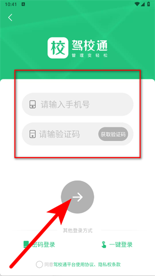 4、在登錄注冊界面,輸入手機號,點擊獲取驗證碼,輸入驗證碼后,點擊箭頭按鈕完成注冊。