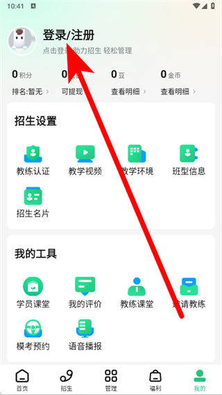 3、在我的頁面,點擊上方的登錄注冊選項,進入登錄注冊界面。