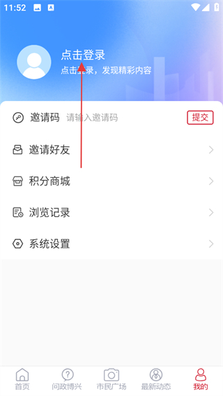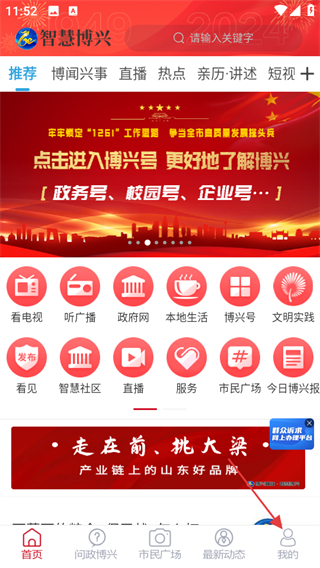 1、進(jìn)入智慧博興,在首頁點(diǎn)擊底部我的,進(jìn)入個(gè)人頁面。