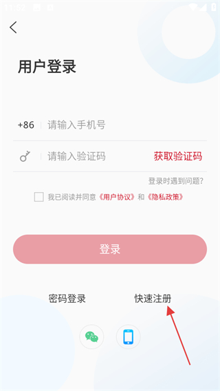 3、在用戶登錄頁面,點(diǎn)擊快速注冊(cè),進(jìn)入用戶注冊(cè)頁面。