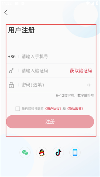 4、在用戶注冊(cè)頁面,輸入信息,同意協(xié)議后,點(diǎn)擊注冊(cè)完成注冊(cè)操作。