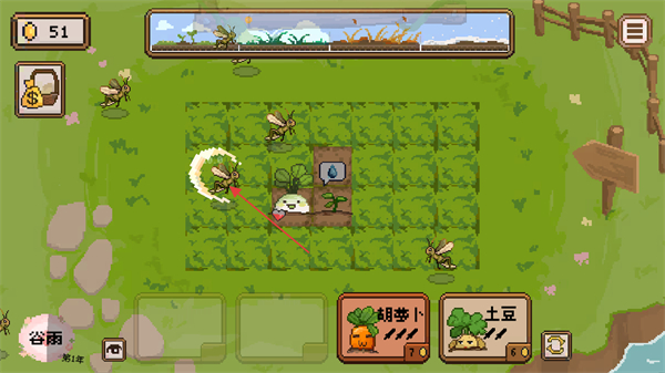抵御蝗蟲后可收獲豐收點數,用于升級農場土地肥力提升作物生長速度、解鎖種子庫、搭建灌溉設施,經營成果直接反哺防御能力,形成“經營-防御”閉環(huán)。
