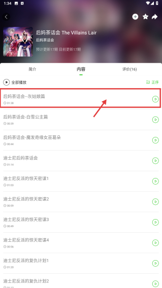 4、在劇集詳情頁,選擇具體音頻如后媽茶話會(huì)-灰姑娘篇,即可開始聽力學(xué)習(xí)操作。