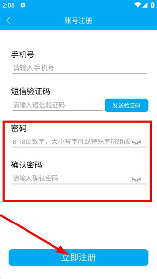 4、在賬號(hào)注冊(cè)頁(yè)面,設(shè)置密碼并確認(rèn)密碼后,點(diǎn)擊立即注冊(cè),完成注冊(cè)操作。