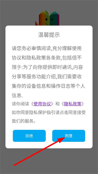 1、在溫馨提示彈窗中,點(diǎn)擊同意,進(jìn)入億谷智慧教育登錄頁(yè)面。
