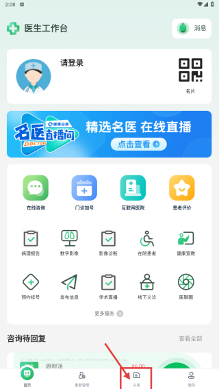 1、打開醫(yī)療資訊類應用,點擊底部頭條選項,進入頭條頁面。