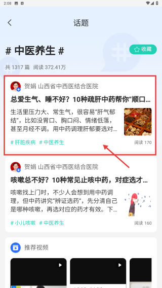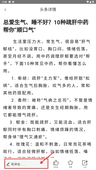 3、在文章列表中,點擊目標文章如總愛生氣、睡不好?10種疏肝中藥幫你‘順口氣’,進入文章詳情頁。