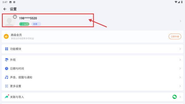 2、在設(shè)置頁面,點(diǎn)擊賬號(hào)區(qū)域,進(jìn)入賬號(hào)功能列表頁。