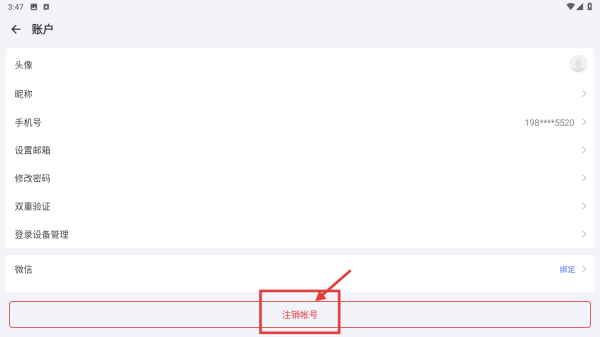 4、在賬戶詳情頁面,點(diǎn)擊注銷帳號(hào)選項(xiàng),按提示完成賬號(hào)注銷操作。