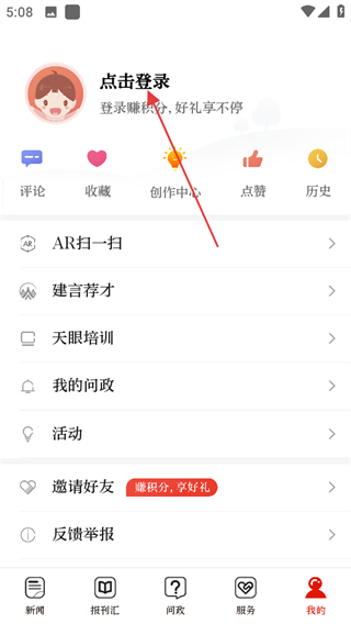 2、在個(gè)人頁面,點(diǎn)擊點(diǎn)擊登錄,進(jìn)入登錄操作頁面。