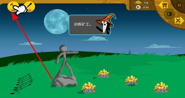 1、新手游玩點擊錘子,可以訓練礦工,訓練好的礦工能去開采金礦,為獲取資金提供助力。