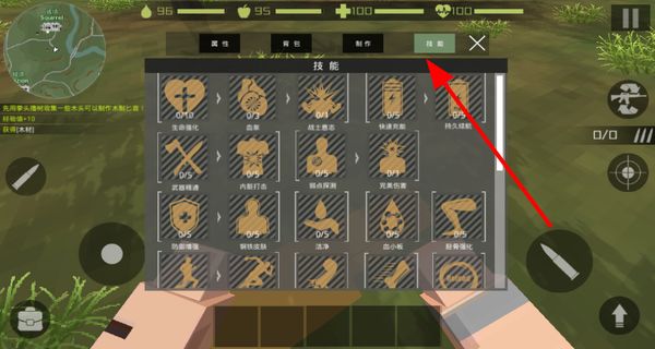 2、打開技能界面,對(duì)技能進(jìn)行升級(jí),升級(jí)后的技能能增強(qiáng)角色在生存、戰(zhàn)斗等方面的能力。