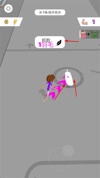 1、在城市客房關(guān)卡,抓取羽毛。