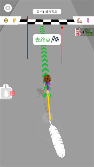 2、使用羽毛道具后,沿著路徑前往終點(diǎn),完成城市客房關(guān)卡挑戰(zhàn),解鎖新場景。