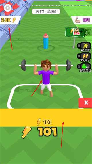 4、在健身房場景中,不斷解鎖更重的杠鈴等健身設(shè)備,朝著更高能量值和屬性提升的目標(biāo)努力。