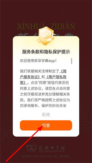 1、在服務(wù)條款和隱私保護(hù)提示彈窗中,點(diǎn)擊同意,進(jìn)入主頁面。