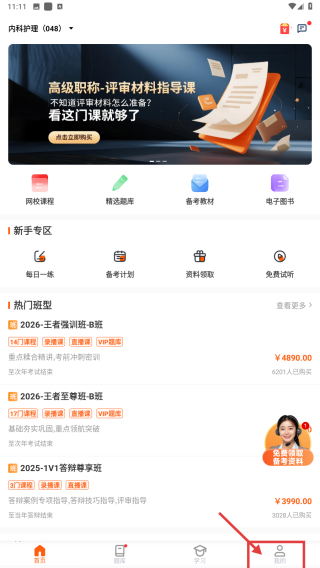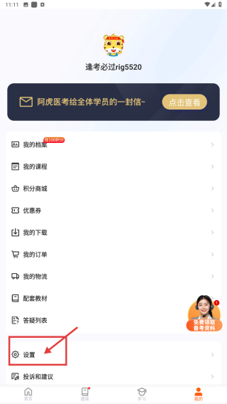 1、打開阿虎醫(yī)考應用,點擊底部我的選項,進入個人中心頁面。