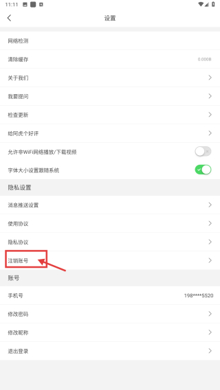 3、在設置界面,點擊注銷賬號選項,查看注銷說明。