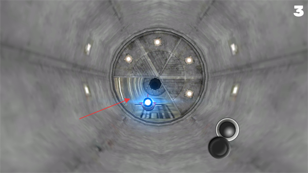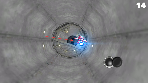 2、通過屏幕右側(cè)的操控按鈕控制飛船的方向和移動(dòng),讓飛船保持在隧道中央附近。