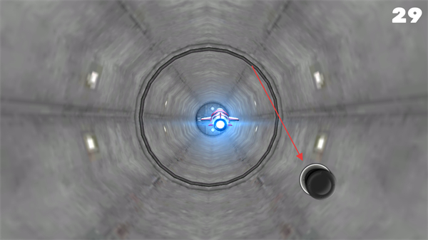 1、進(jìn)入游戲,操控飛船在隧道中前進(jìn),注意避開隧道壁,屏幕上方數(shù)字顯示為進(jìn)度或分?jǐn)?shù)。