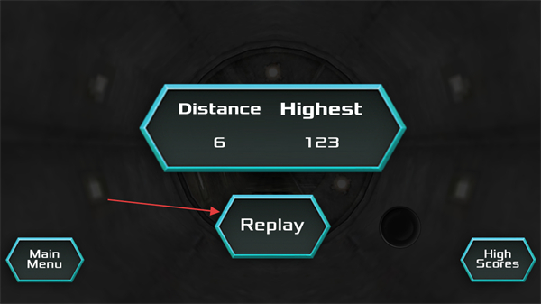 4、當(dāng)游戲結(jié)束,屏幕會(huì)顯示飛行Distance距離和Highest最高記錄,點(diǎn)擊Replay按鈕可重新挑戰(zhàn)。