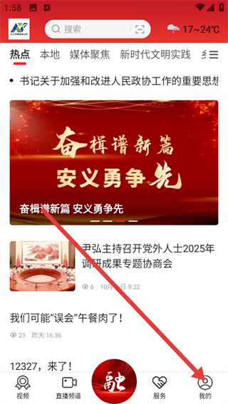 1、打開掌上安義,進(jìn)入主界面后,點(diǎn)擊頁面底部的我的選項(xiàng)。