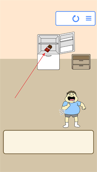4、冰箱打開后,點擊冰箱內(nèi)的食物,讓人物成功吃到食物,完成本關(guān)挑戰(zhàn)。