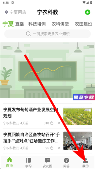 1、打開寧農(nóng)科教,點(diǎn)擊頁(yè)面底部的我的。