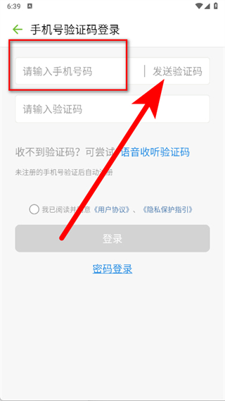 3、在手機(jī)號(hào)驗(yàn)證碼登錄頁(yè)面,輸入手機(jī)號(hào)碼后,點(diǎn)擊發(fā)送驗(yàn)證碼。
