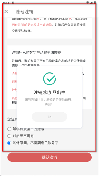 5、在賬號(hào)注銷頁(yè)面,選擇注銷原因后,點(diǎn)擊確認(rèn)注銷,完成賬號(hào)注銷。