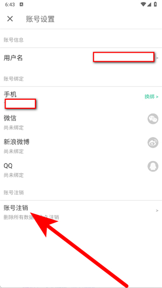 4、在賬號(hào)設(shè)置頁(yè)面,點(diǎn)擊賬號(hào)注銷選項(xiàng)。