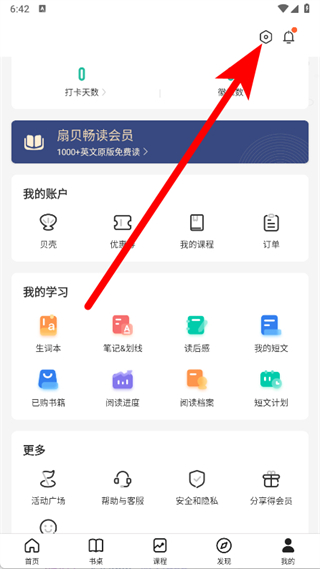 1、打開(kāi)扇貝閱讀,點(diǎn)擊頁(yè)面底部的我的。