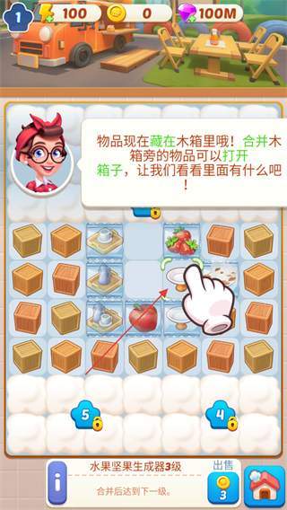 1、物品藏在木箱里,合并木箱旁的物品可打開箱子,看看里面有什么。
