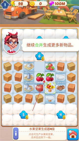 3、繼續(xù)合并生成更多新物品,不斷合并能得到更高級的物品。