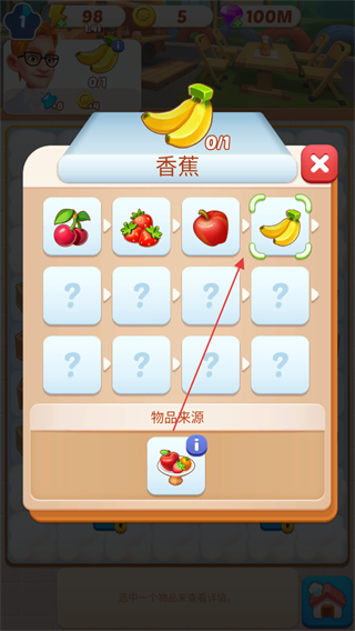2、要獲取香蕉,可從物品架中選擇香蕉來進(jìn)行后續(xù)操作。