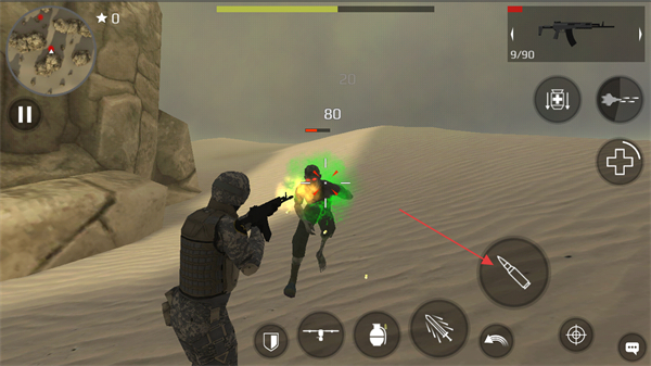 4、點擊彈藥按鈕補充彈藥,持續(xù)攻擊敵人,完成關卡目標。